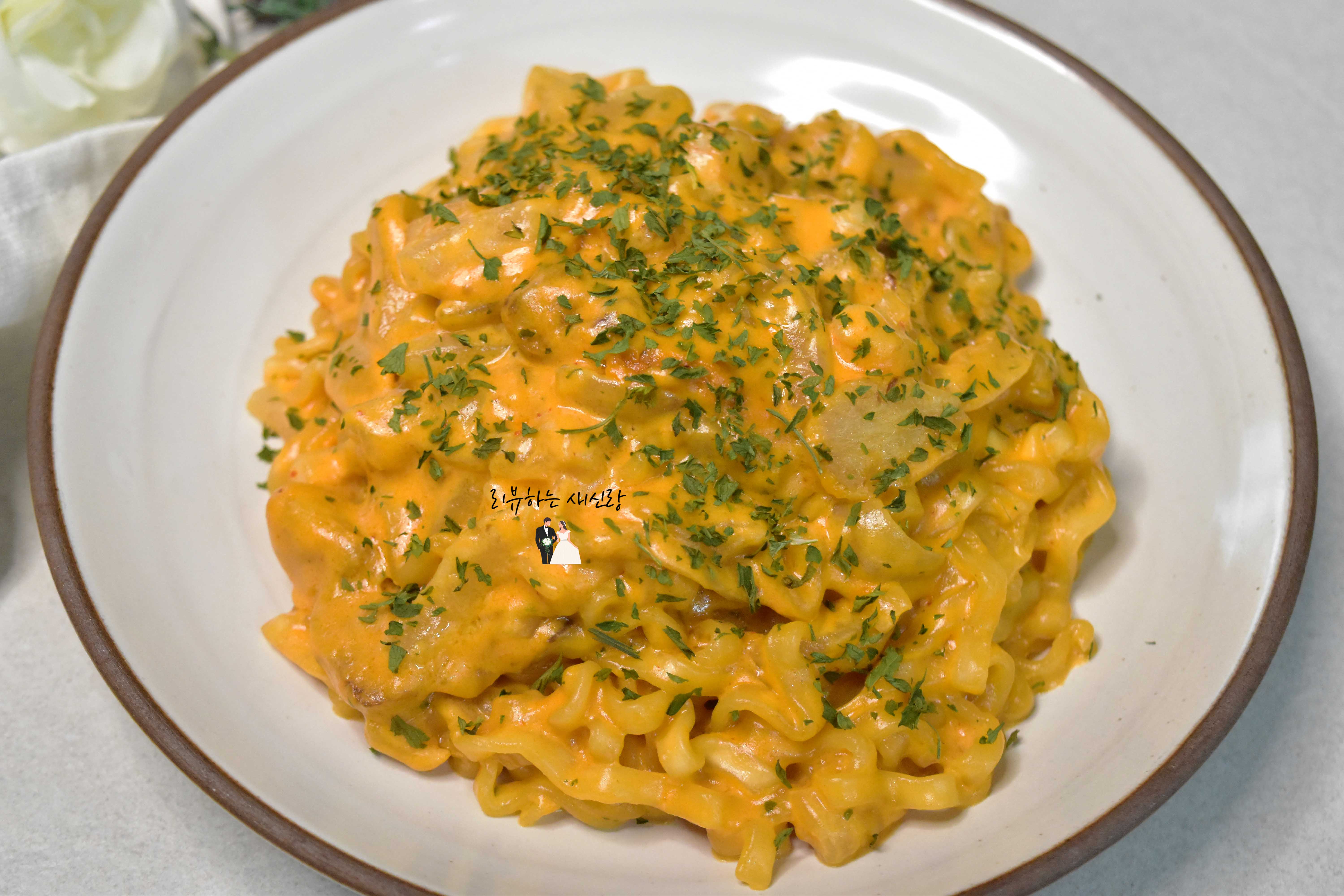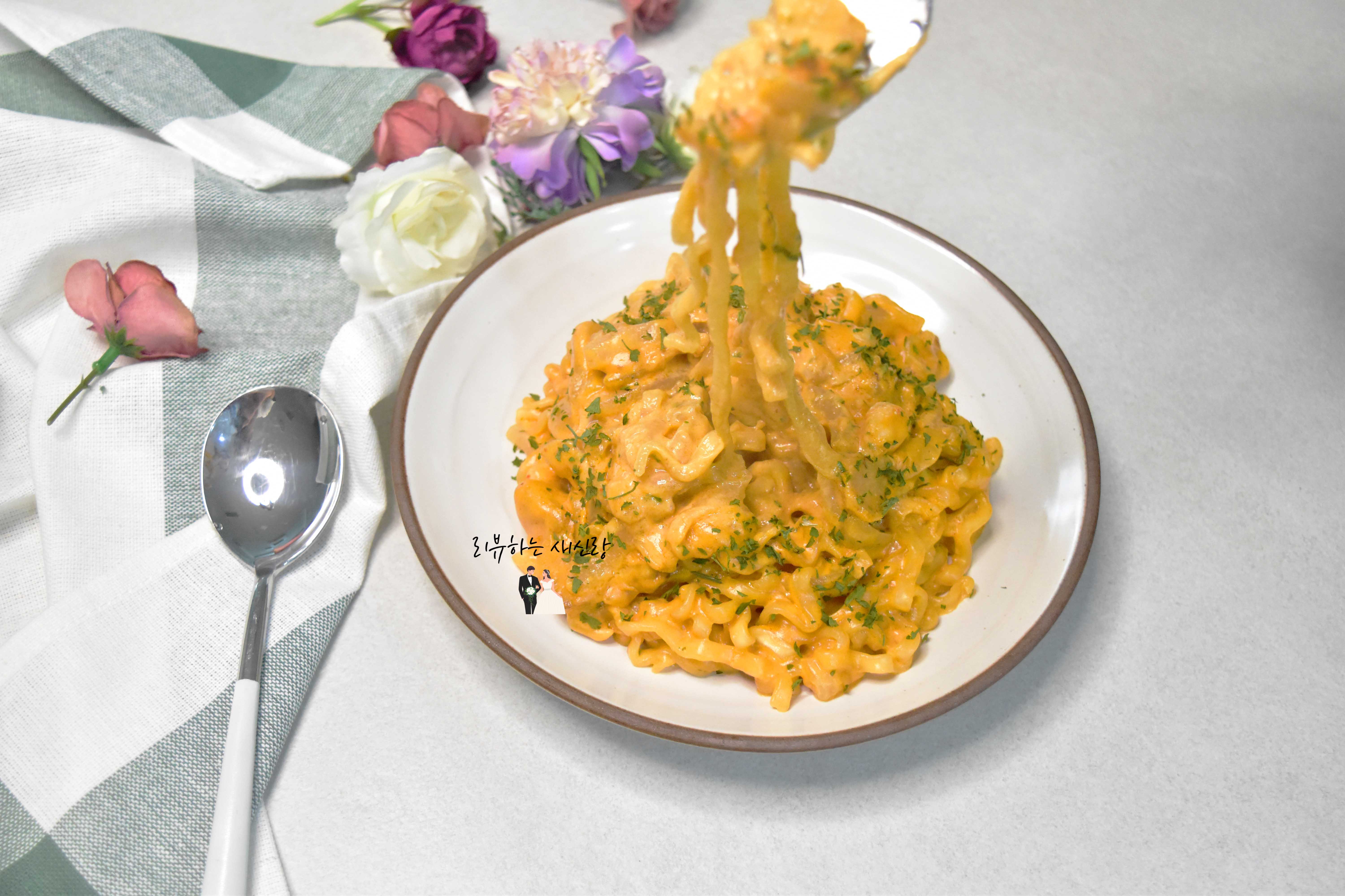 원래 자체가 꾸덕하게 먹는 라면인데 거기에 우유에 치즈를 넣어 고소함이 극대화되었습니다. 마치 로제 파스타를 먹는 것 같으나, 새우가 들어가 해산물이 살짝 스치며 짬뽕 특유에 매콤함도 느껴져 정말 맛이 좋았는데요. 저희 마님도 한 입 먹어보시더니 두 눈이 똥~그래 지며 "오 정말 맛있다~"를 외쳤습니다. 저도 이렇게 맛있을 줄은 몰랐는데요, 정말 둘이 다 먹고 나중에 또 이렇게 해 먹자~를 연신 외쳤습니다.
