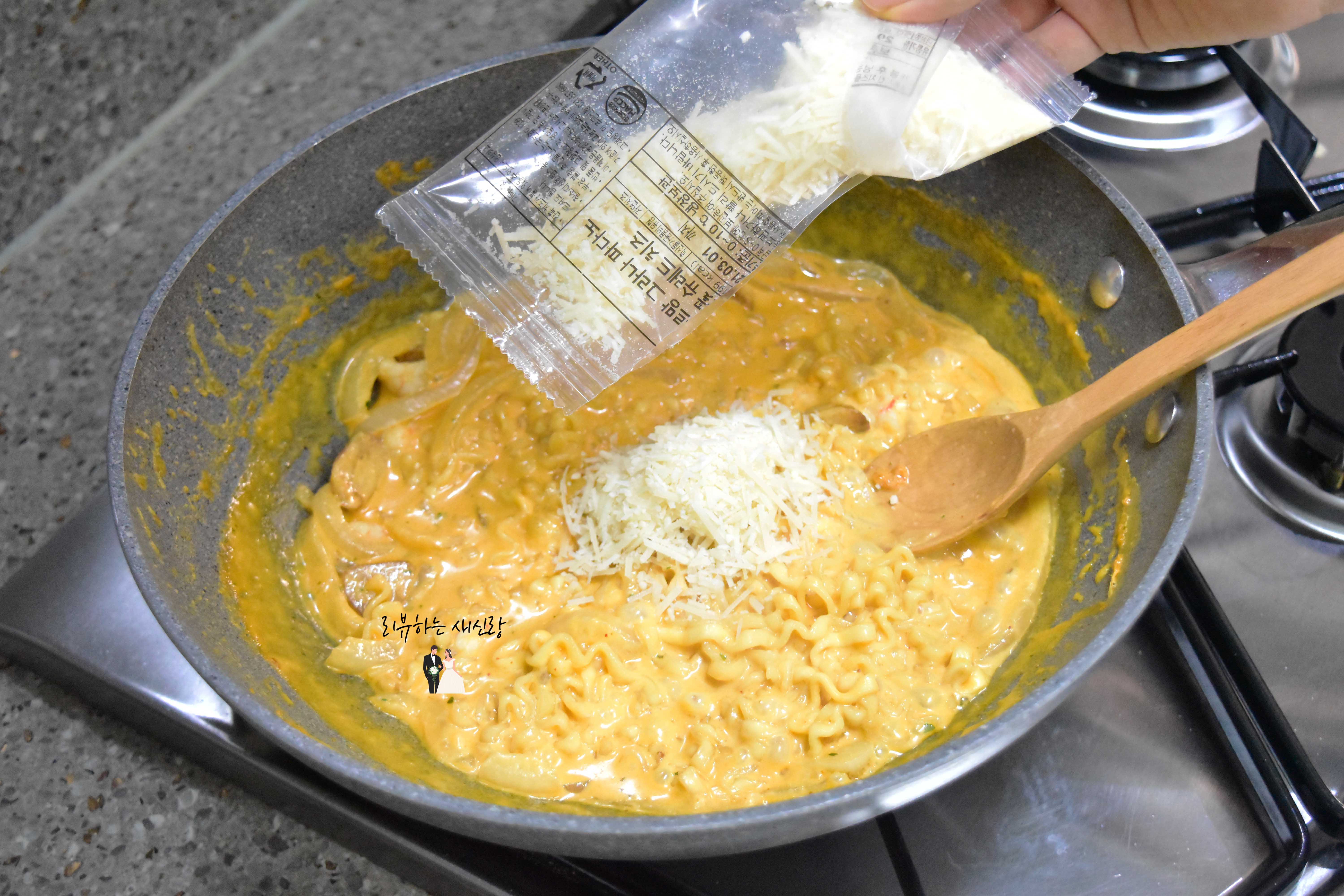저는 치즈의 꾸덕한 식감을 좋아하는데, 그래서 집에 남아있던 치즈를 넣어봤는데 정말 맛있더라구요. 치즈 좋아하시는 분들은 호불호 없이 정말 좋아하실 추가 재료에요~
