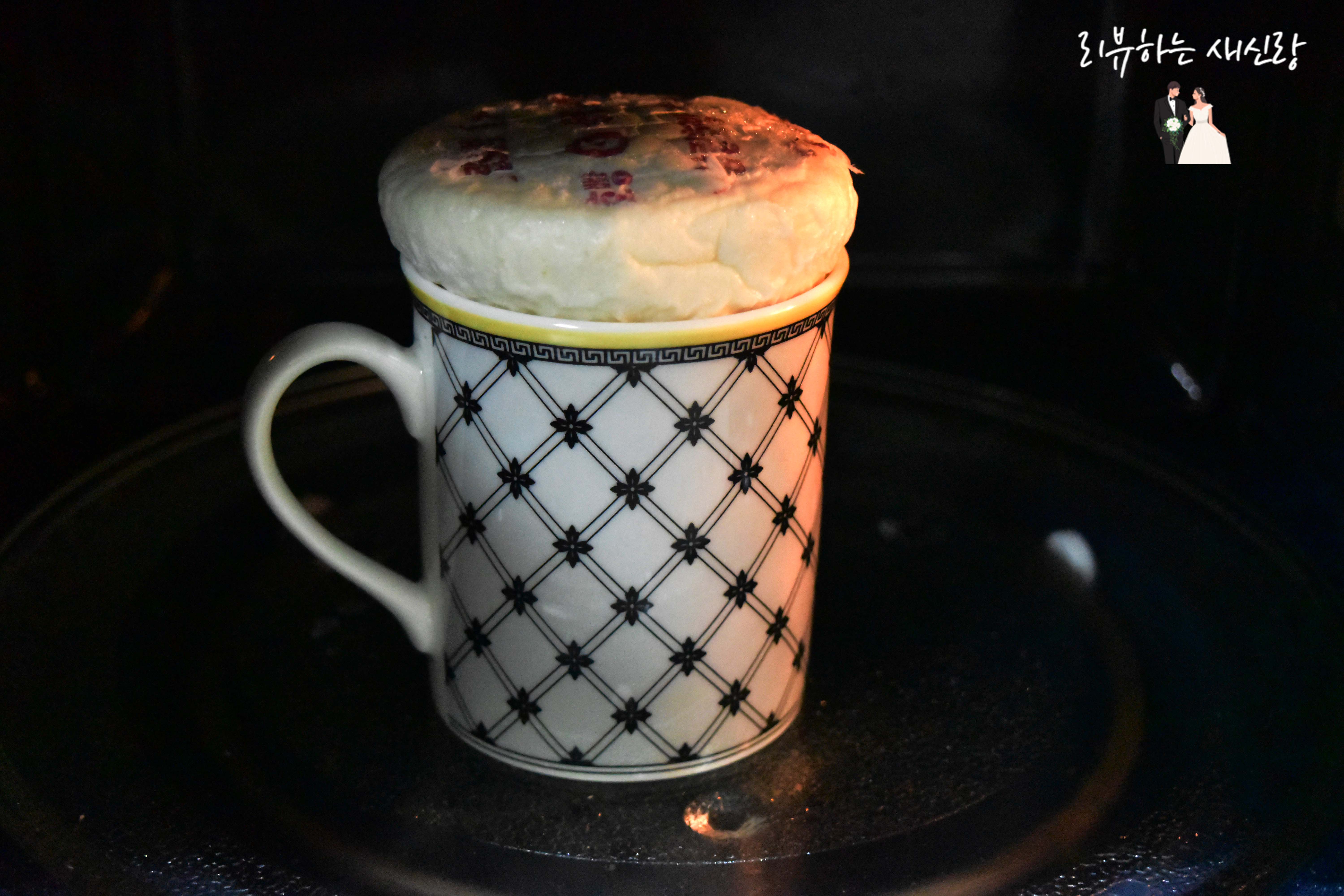 호빵을 이렇게 전자레인지에 돌릴 때는 되도록 손잡이가 있는 머그컵을 이용해주세요. 전자렌지에 돌린 컵은 굉장히 뜨거워 정말 조심하셔야 됩니다. 이렇게 손잡이가 있는 머그컵을 이용하면, 뜨겁지 않고 쉽게 꺼낼 수 있습니다~!